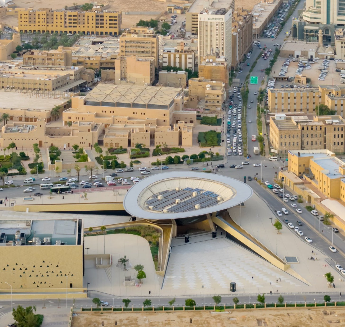 リヤドは典型的な車社会で、慢性的な交通渋滞に悩まされてきたという。自動車依存を減らし、手頃で効率的かつ環境にやさしい都市の公共交通網を構築する目的で、首都地下鉄、リヤド・メトロが 2024 年 12 月に開業した。カスール・アル・ホクム駅はリヤド・メトロの新駅で、85 駅からなる地下鉄線の主要路線 2 本を接続する、ハブ駅の役割を果たしている。