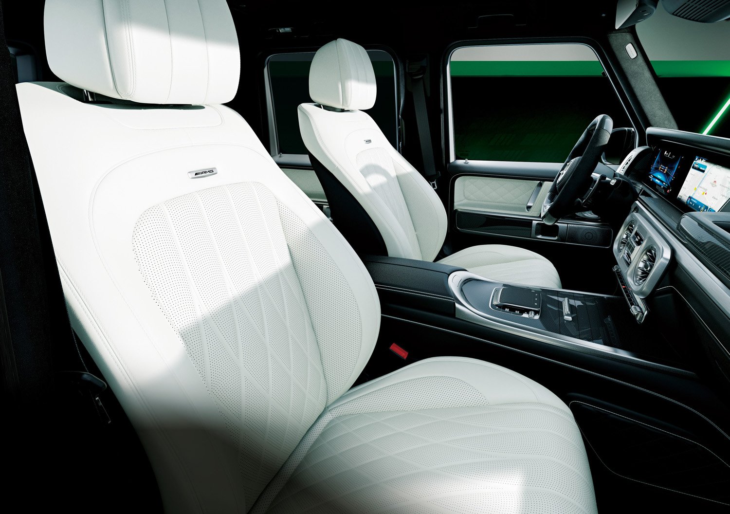 一方、インテリアにもエクステリアと合わせてカーボン素材を採用。本特別仕様車限定のAMGパフォーマンスステアリング(カーボンファイバー/MICROCUT)、AMGカーボンファイバーインテリアトリムがAMGの高性能な世界観を強調し、シートは人気の高いプラチナホワイト内装の採用で、カーボンとの美しいコントラストが特別感を演出している。