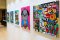 キャンバスに描かれたアクリル絵の具の筆跡が、作品ひとつひとつの存在感を際立たせます。