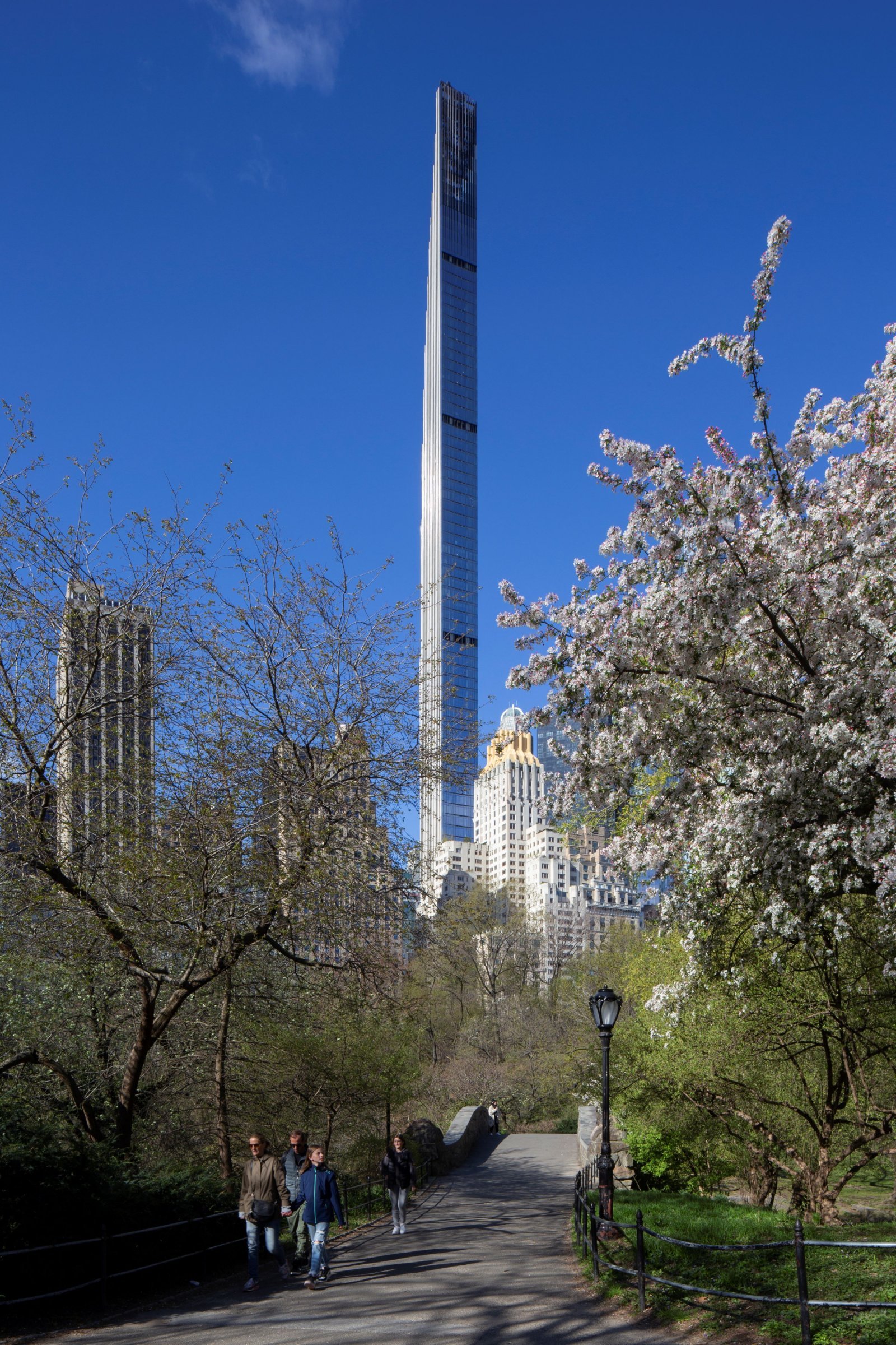 スタインウェイ・タワーは、高さ 435 メートルの超高級コンドミニアムとして2021 年に完成した。ニューヨーク屈指の超高層建築であると同時に、幅と高さの比率が約 1:24 という世界で最も細長い超高層ビルとして知られている。最新技術を活用し限界に挑戦した建築だが、実はニューヨークの伝統的な超高層ビルに息づく職人技、歴史、哲学へのこだわりが詰まった建物でもある。スタインウェイ・タワーは、正確には新築ではない。建物の基部には、1925 年に名門ピアノメーカー、スタインウェイの「スタインウェイ・ホール」という歴史ある建造物が保存されており、このホールの改修という形で建設された。デザインを担当したのは、ニューヨークに拠点を置く、SHoP アーキテクツ。タワーの東西のファサード(外観)に、テラコッタ、ガラス、ブロンズの細工を施しており、歴史的なニューヨークのタワーが持つ質感、素材感、細部へのこだわりを再現している。