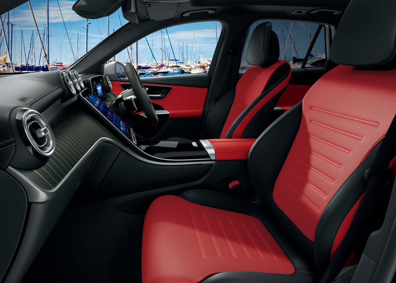 今回の「スポーツ」モデルは、有償オプションだった「AMGラインパッケージ」を標準装備。また、クーペの「GLC 220 d 4マチッククーペスポーツ(ISG)」にはボディ同色ホイールアーチ、ワイドホイールアーチも標準装備している。インテリアではスポーツシート、本革巻スポーツステアリングが精悍な印象を与え、リアルウッドのアンスラサイトライムウッドインテリアトリムにより上質な室内空間を実現。後席にはシートヒーターも備える。