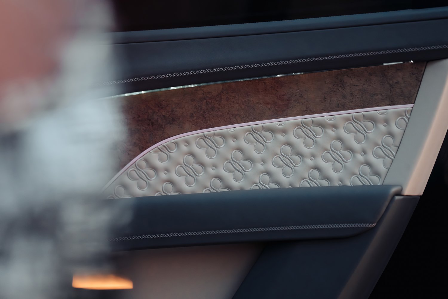 インテリアにはグラビティグレーとリネンのレザー、オータムストーンよびピアノリネンのヴェニアを採用。繊細なダイヤモンドディテールやムードライティングが上質なキャビンを演出し、センターコンソールにはダイヤモンドをあしらった特別仕様の“Be Boodles”デザインが施されている。
