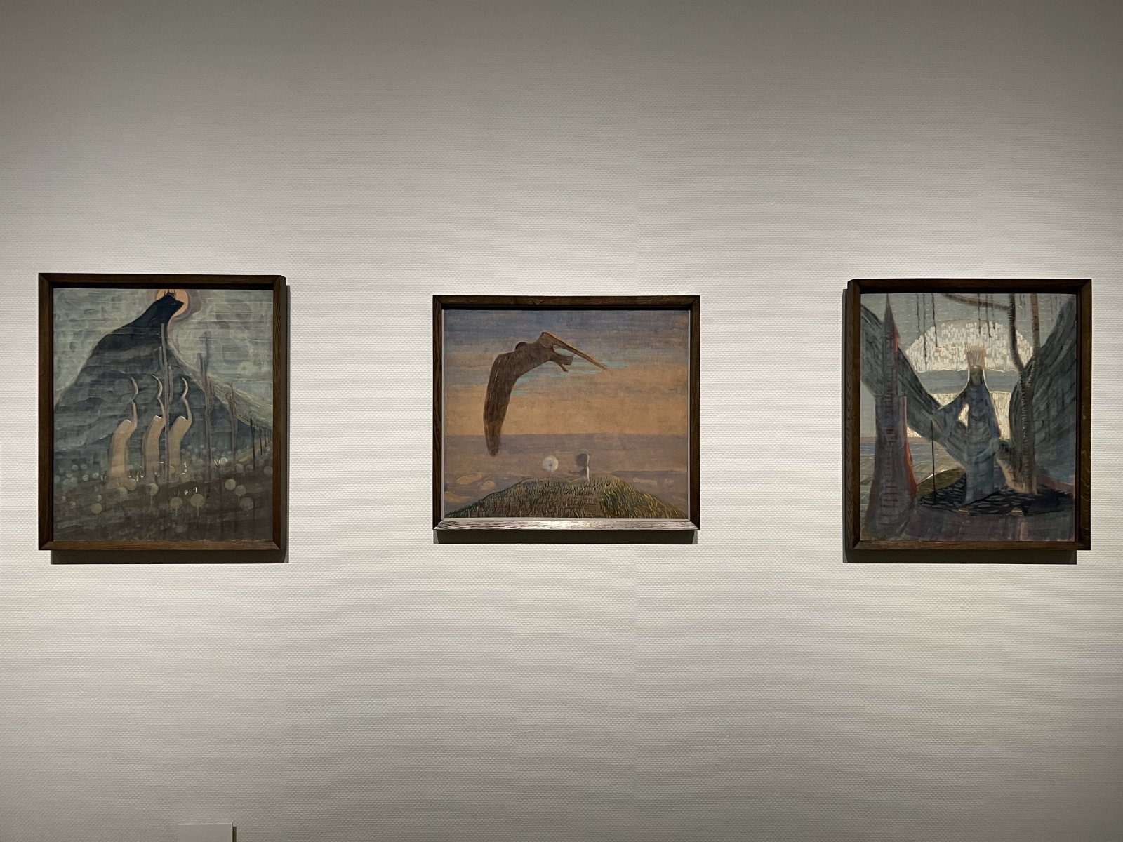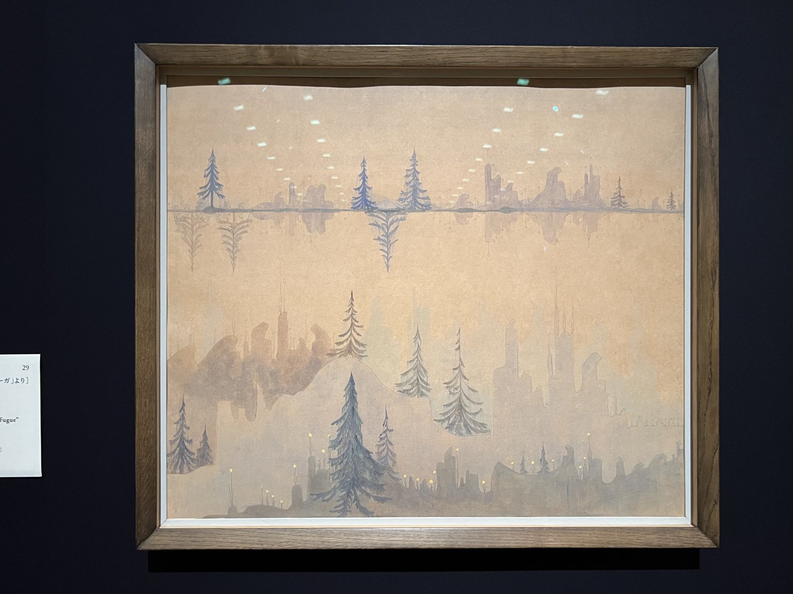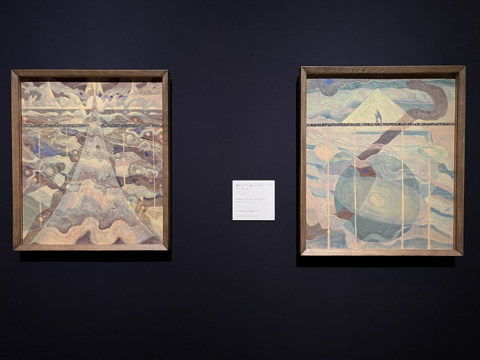 音楽と絵画に共通する構造を見出し、融合を追求したチュルリョーニスは、近代美術において独自な表現を切り拓いた。その一つの到達点が、全7作からなる「ソナタ」の連作だ。『第5ソナタ(海のソナタ)』では、波が軽やかに岸辺へと展開し(アレグロ)、静かな海底へ沈み(アンダンテ)、最後は高くせり上がる大波によって劇的な終結を迎える(フィナーレ)。アンダンテには、海底の王国をめぐるリトアニア神話のイメージが潜んでいる。