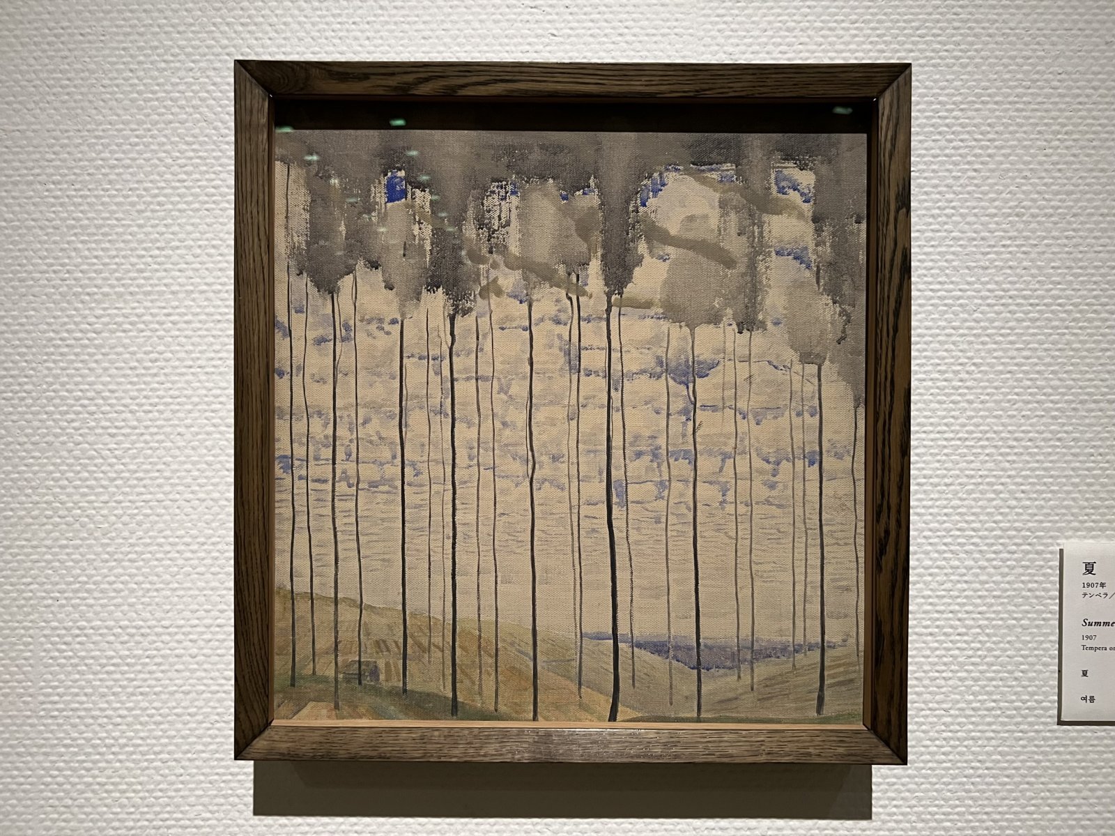 チュルリョーニスにとって、祖国の自然は尽きることのない着想の源だった。しかし画面からは、地形や景観を忠実に写し取る姿勢がほとんど見られない。むしろ自然は、生命の気配そのものとして抽象化され、詩情を湛えた象徴的なイメージへと変容する。とりわけ彼を魅了したのは、季節の巡りに象徴される生成と変化のリズムであり、それが『春』や『冬』といった連作に結実した。