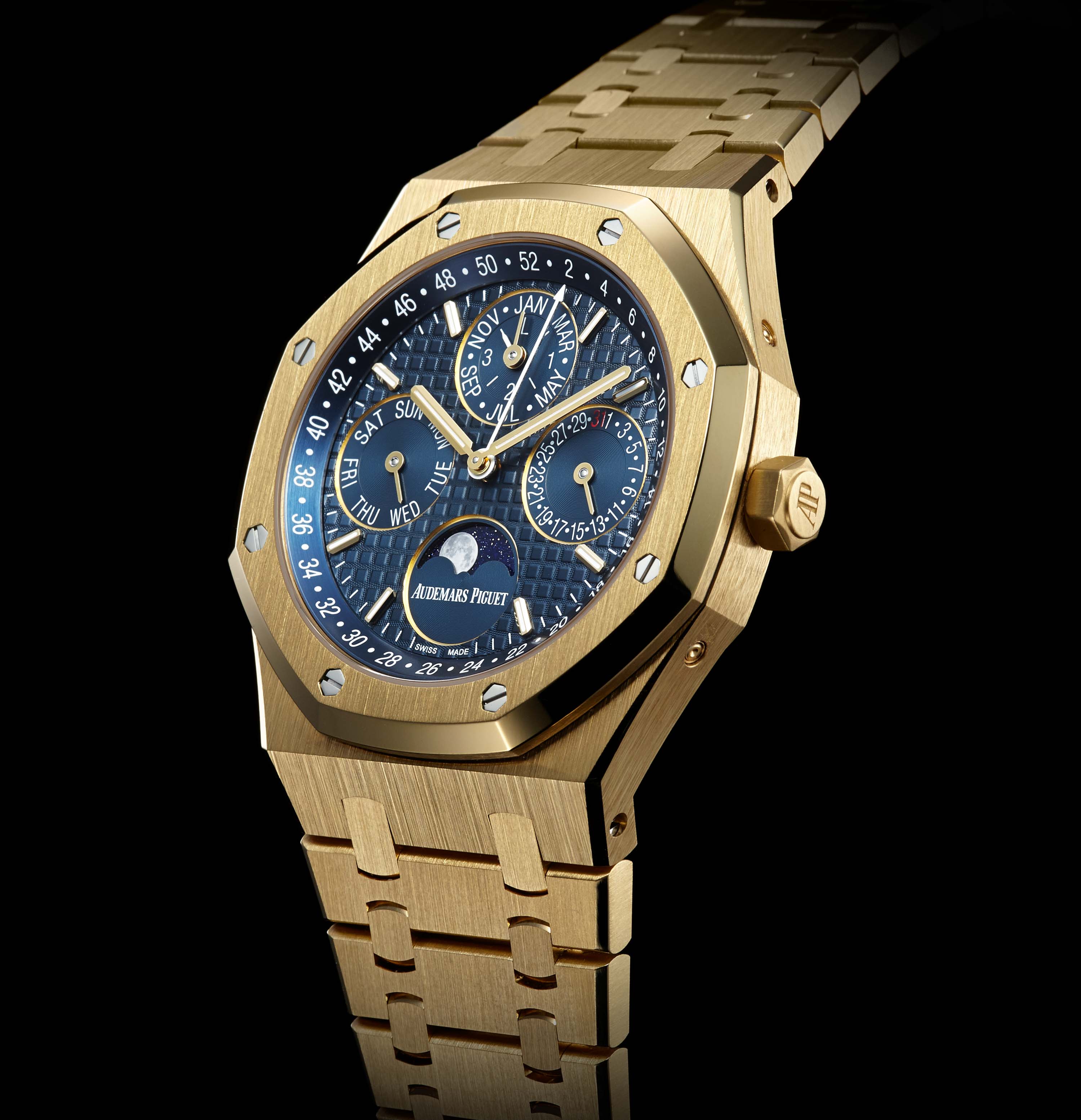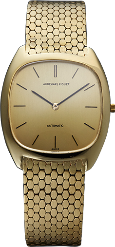かつてゴールドという貴金属からステンレススティールに挑戦した「ロイヤル オーク」は、当時のダイナミックに変化していくライフスタイルを見事に捉えて大きな成功を導いた。そうした歴史的な意味を見出すとすれば、イエローゴールドの上質な黄金色をていねいに立体的に表現することで、「ロイヤル オーク」に新たなステイタスを付与したといえるだろう。