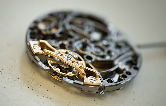 「いかに優れた機構でも、オープンワークで内部を見せるのであれば、すべてが美しくなければなりません。仕上げにしても、機械を使った面取りは甘くなるので、すべて手作業で行います。それによる曲面はどんな角度からも光を反射するため、立体的で奥行きが感じられる内部になるのです。オープンワークは他のモデルにもありますが、個性に応じて面取りの幅を変えたり、サンドブラストなどのテクニックを使い分けています」
